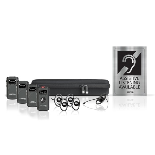 | What's included? | (1) LK-1 ListenTALK Transceiver, (3) LKR-11 ListenTALK Receiver Pro, (1) LA-451 Headset 1 (Ear Speaker w/Boom Mic), (2) LA-166 Neck Loop, (1) LA-423-01 4-Port USB Charger, (1) LA-483 Soft Shell Case 4, (1) Assistive Listening Notification Signage Kit | |